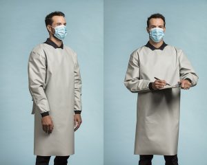 The washable medical gowns are also made from Odyssey® Fabric. The gown is open in the front with 2 adjustable velcro strips, one pocket, and elastic cuffs. Gowns are machine washable and dryer safe.