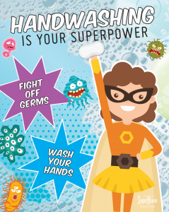 Remind students to wash their hands and practice social distancing with posters and decals in visible areas.