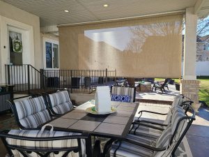 Have you ever been catching up with friends in your beautiful outdoor seating area and a ray of golden sunshine blinds you? This is just one instance when a drop shade can benefit you. You can lower the shade but still enjoy the beautiful weather, view, and go on with your visit.