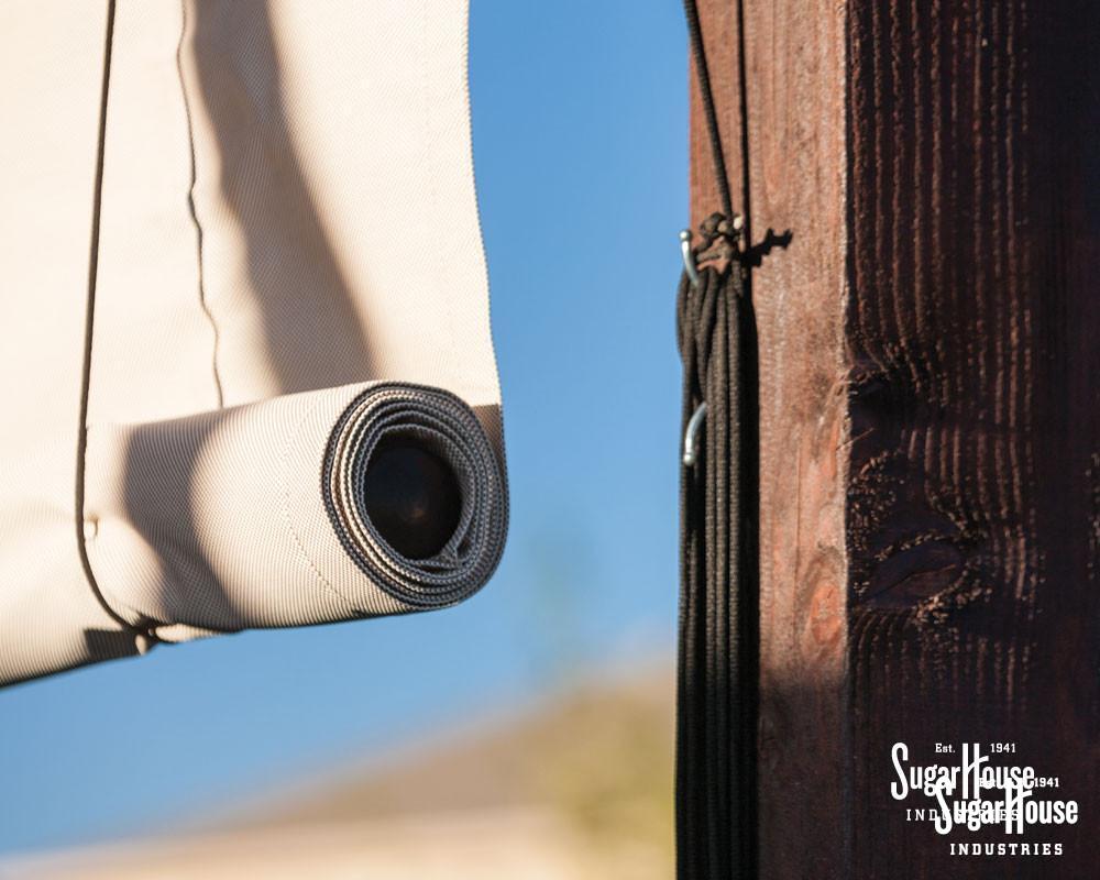 - Also available in Sunbrella fabrics, providing 100% protection but not see-through